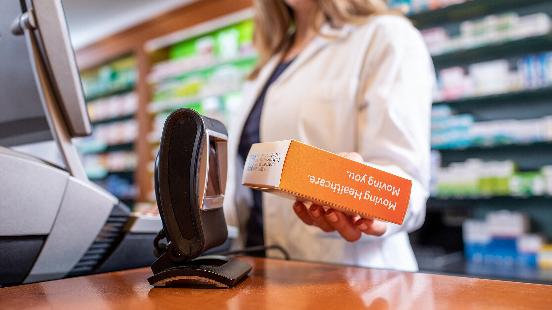 Echtheitsprüfung in der Apotheke. Faller Packaging ist dank modernster Fertigungstechnologien für den Druck sämtlicher Serialisierungs-Codes auf Faltschachteln und Labels bestens gerüstet.