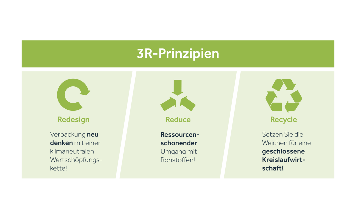 Um die Nachhaltigkeitsziele zu erreichen, setzt Faller Packaging auf die 3R-Prinzipien: Redesign – Reduce – Recycle. So stellt das Unternehmen etablierte Prozesse immer wieder auf den Prüfstand. Wie können Werkstoffe durch nachhaltigere Materialien ersetzt werden? Wie lässt sich die Produktion optimieren, um den Einsatz von Energie und Rohstoffen zu reduzieren? Und wie gelingt es, Verpackungen effizient wiederzuverwerten?